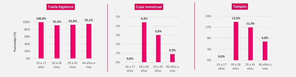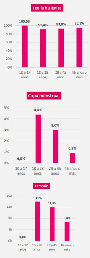 Imagen tomada de: DANE, Encuesta de Pulso Social – Porcentaje de mujeres que usan toalla higiénica, tampón o copa menstrual, según grupo de edad